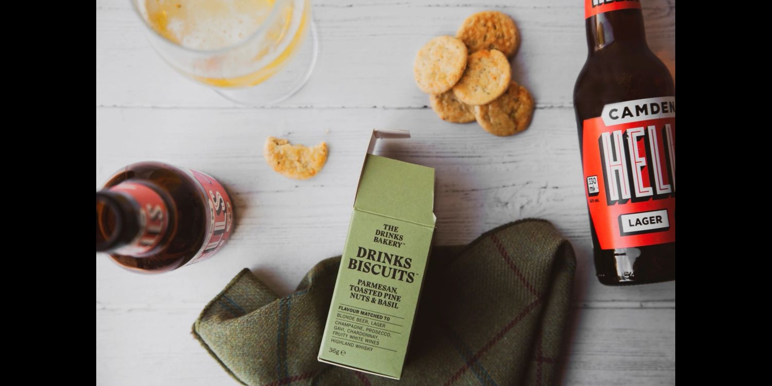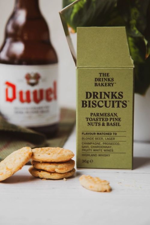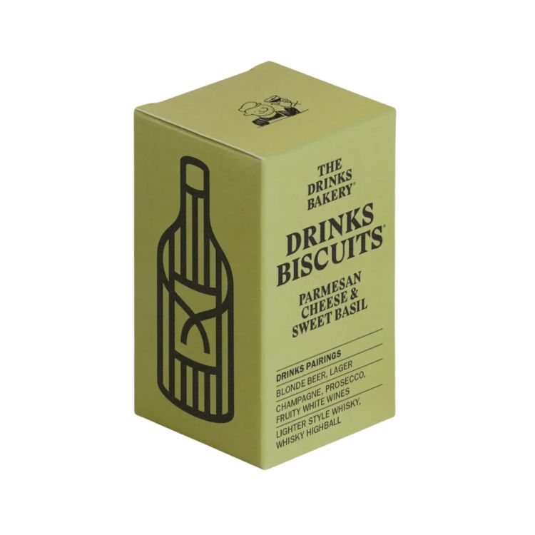 The Drinks Bakery Parmesan Cheese & Sweet Basil Drinks Biscuits, are crafted to pair perfectly with sparkling wines, fruity white wines, blonde beers, craft lagers, and Highland whisky.