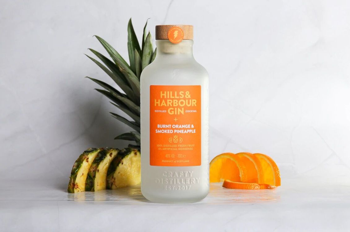 A distilled cocktail? That certainly sounds like something we'd like. The Crafty Distillery brings us Smokey & Citrus Distilled Cocktail, made with a base of Hills & Harbour Gin. Fresh smoked, torched, macerated and pressed pineapple and burnt oranges are added to the gin base and distilled, resulting in... Well, a distilled cocktail. A very intriguing and fruity tipple, which you can simply serve over ice.