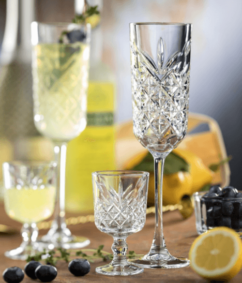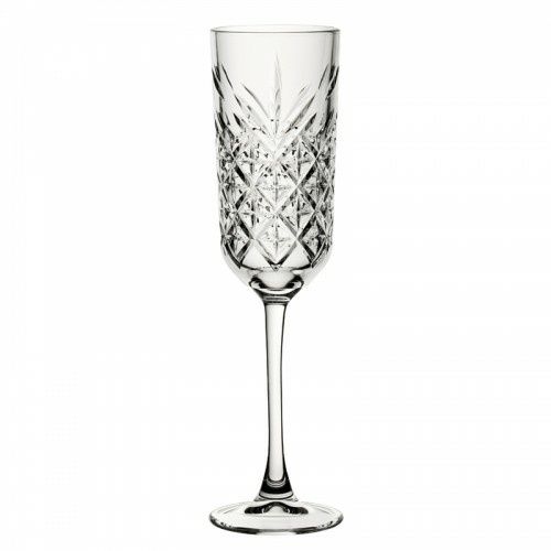 These Timeless Vintage Champagne Flutes 6oz / 17cl are part of a collection covering stemware, tumblers and accessories. Timeless Vintage revives the look and feel of traditional cut crystal but combines it with more robust machine made glass to give that on trend retro feel in a much more versatile way.