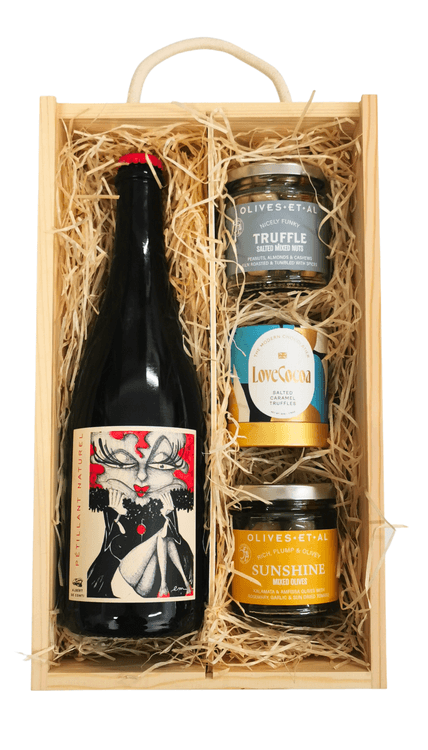 Our Chateau Tour des Gendres, Sauvignon Chenin Blanc Pet Nat Wine & Luxury Snacks in a Wooden Presentation Box is the ideal gift for the Sauvignon Blanc enthusiast. Perfect for birthdays or Christmas, this luxury wine gift includes a full bottle of Chateau Tour des Gendres, Sauvignon Chenin Blanc Pet Nat, characterised by its bright acidity and tart orchard fruit notes. Complementing the wine is an array of delicious sweet and savoury goodies that promise to enhance the tasting experience.